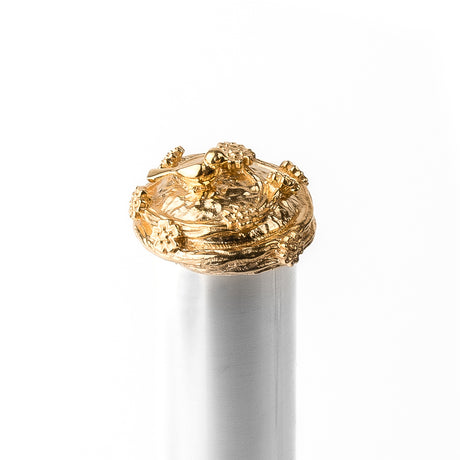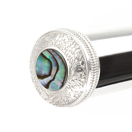 Flute crowns, installed at the end of the flute headjoint, are perfect accessories to customize and add interesting touches to your instrument. Our collection features gold and silver flute crowns complemented with floral engraving and natural stones such as abalone, red ruby, lapis lazuli, black onyx, white nacre, tiger’s eye, and more. All these elements create an eye-catching design that perfectly emphasizes a personal brand and serves as an ideal gift for flutists. In addition to their attractive look, flute crowns add weight and improve the sound. Musicians may experience the change in how the flute feels during practices. Crowns made of gold or decorated with stones, may also add a dark tone. Flute crowns from KGUmusic feature many benefits — multiple designs, high-quality materials, aesthetics, and easy installation. Buy flute crowns to transform your flute and improve its performance.